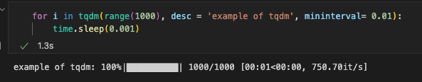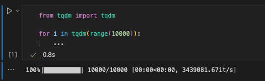 루프에 스마트 진행률 측정기가 표시되도록 즉시 반복 가능 항목으로 래핑하면 tqdm(iterable)이 완료된다.