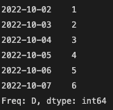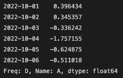 s1 = pd.Series([1, 2, 3, 4, 5, 6], index=pd.date_range("20130102", periods=6)) s1