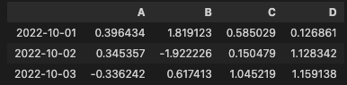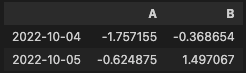 선택 과 설정을 위한 표준 파이썬 / NumPy 식은 직관적이고 대화형 작업에 유용하지만, 프로덕션 코드의 경우 최적화된 Pandas 데이터 엑세스 방법인 DataFrame.at(), DataFrame.iat(), DataFrame.loc() 그리고 DataFrame.iloc()를 추천한다.