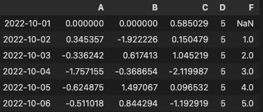 df.loc[:, "D"] = np.array([5] * len(df))위의 설정 작업의 결과