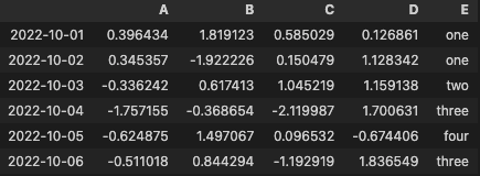 df2 = df.copy() df2["E"] = ["one", "one", "two", "three", "four", "three"] df2